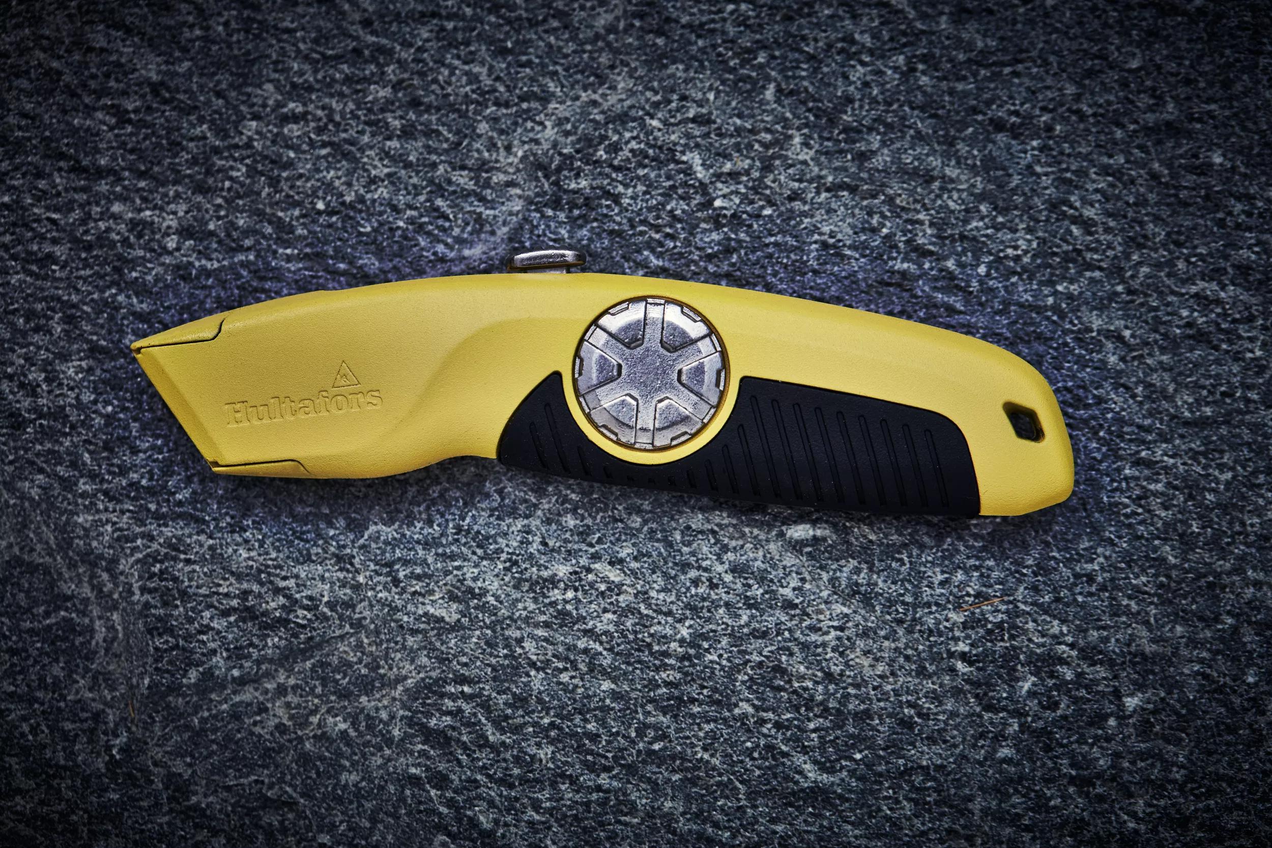 - Ergonomisk, vinklad design med tydligt fingergrepp och avsmalnande spets ger ett utmärkt grepp när man skär gipsskivor.