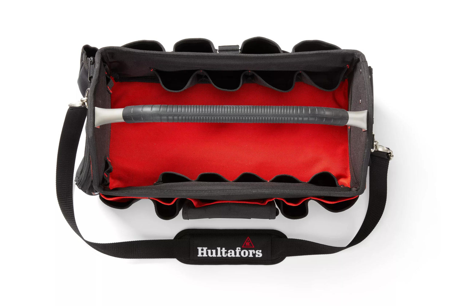 Der er mellemstore lommer med låg og lynlåslukning til sikker opbevaring af følsomt udstyr. Du finder også en holder til langt og smalt værktøj som f.eks. vaterpas og håndsave uden på tasken. Den har også en udvendig holder til båndmål, strop til eltape, blyantholdere, en nøgleringsholder og elastiske stropper til mindre værktøj som f.eks. skruetrækkere.