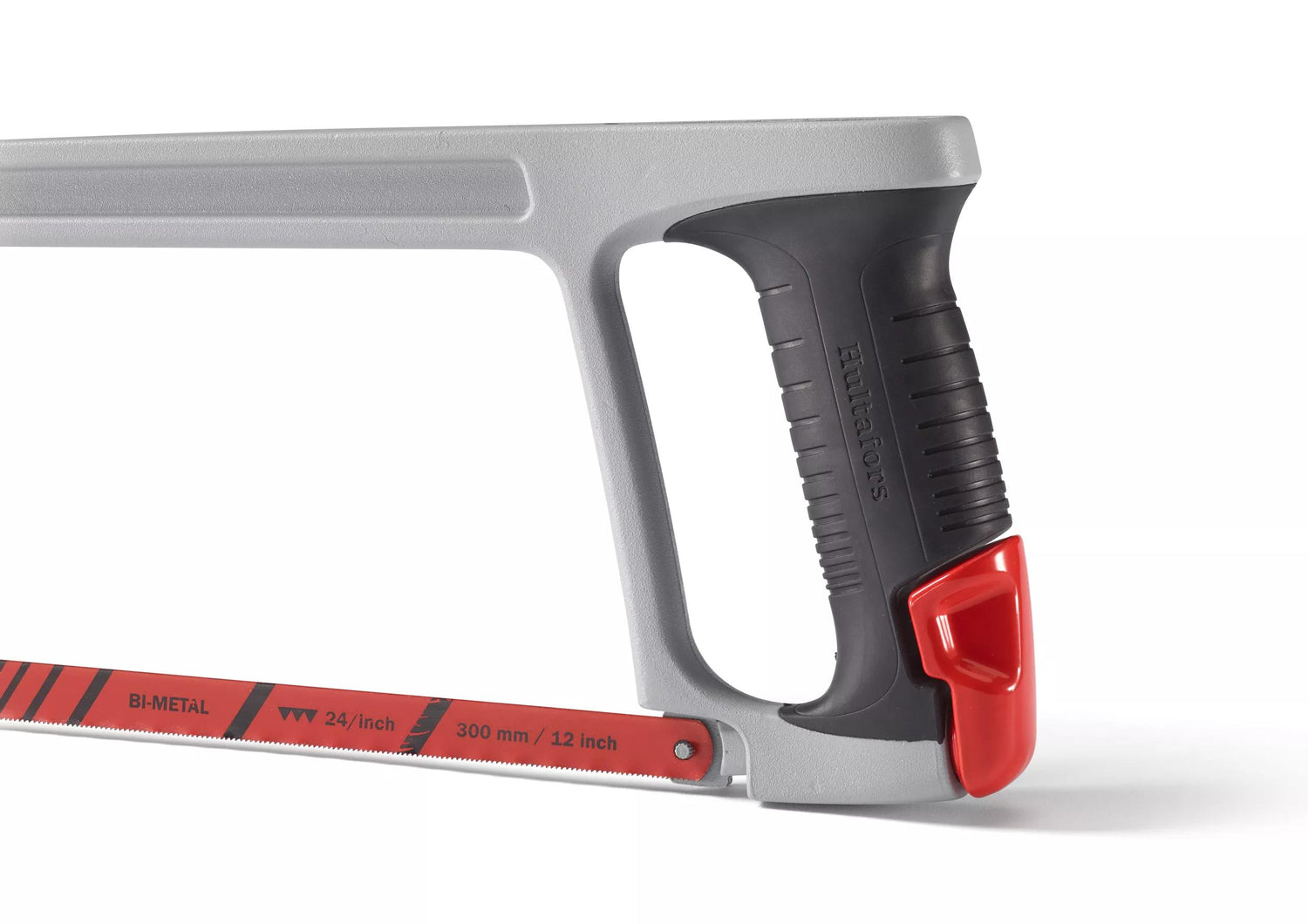 Die Klinge kann zum Schneiden nahe einer flachen Oberfläche gekippt werden, ohne die Leistung oder Präzision zu beeinflussen. Der Klingenspanner ist federbelastet. Die Säge wird mit Hultafors BI-Metall Klinge (24 TPI) für höchste Präzision und Leistung geliefert.