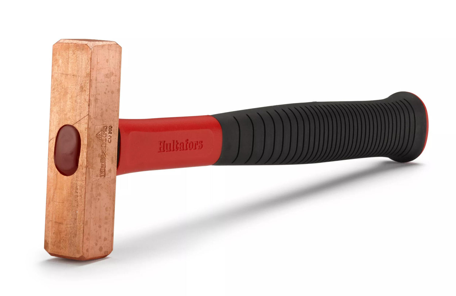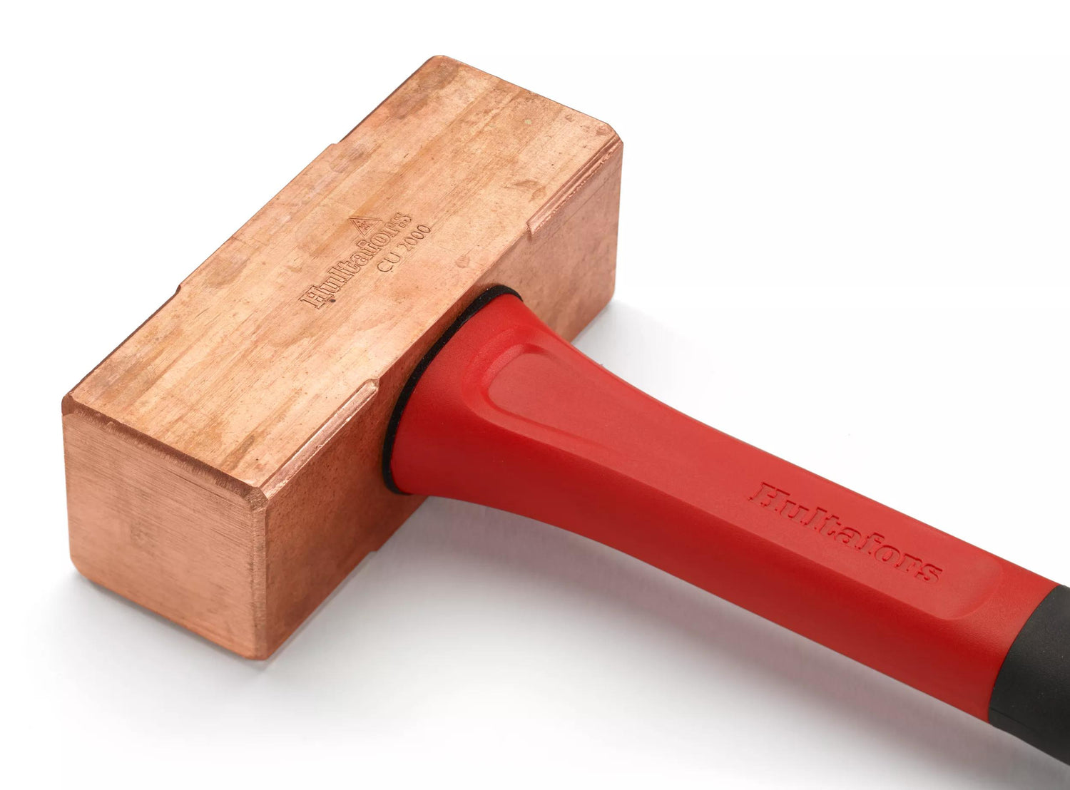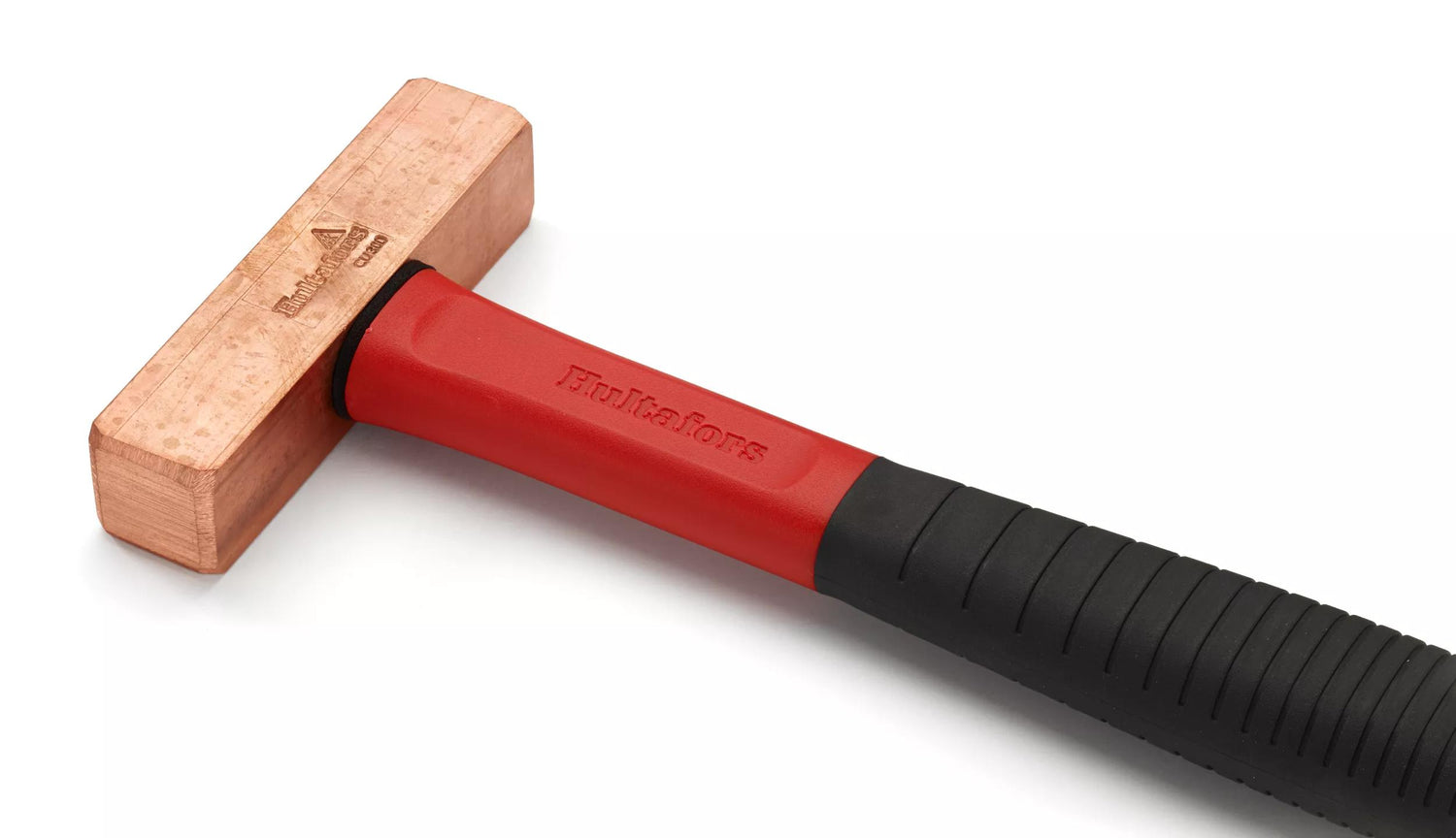 Hammer with copper head and fibreglass shaft. Copper hammers are spark-free and gentle on workpieces.