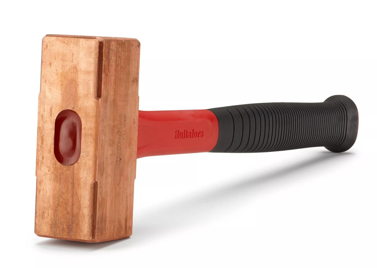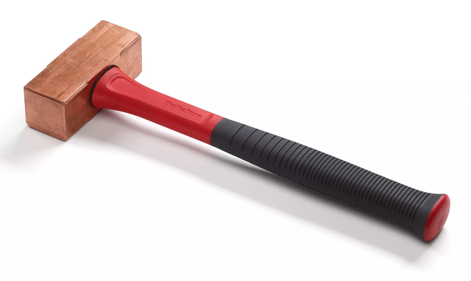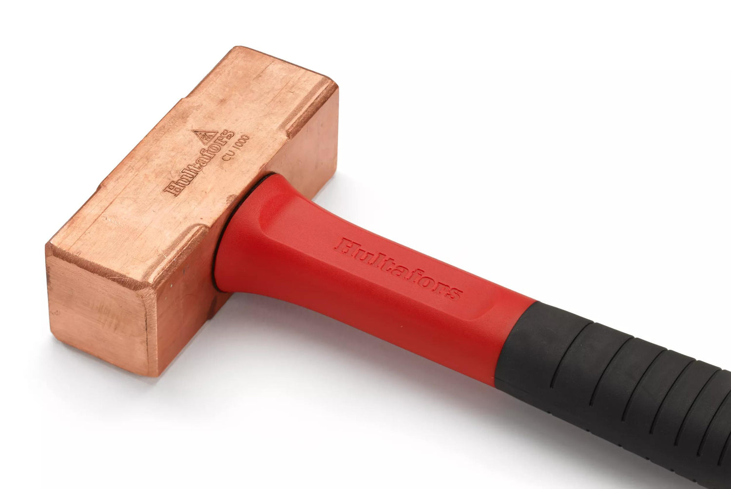 Hammer with copper head and fibreglass shaft. Copper hammers are spark-free and gentle on workpieces.