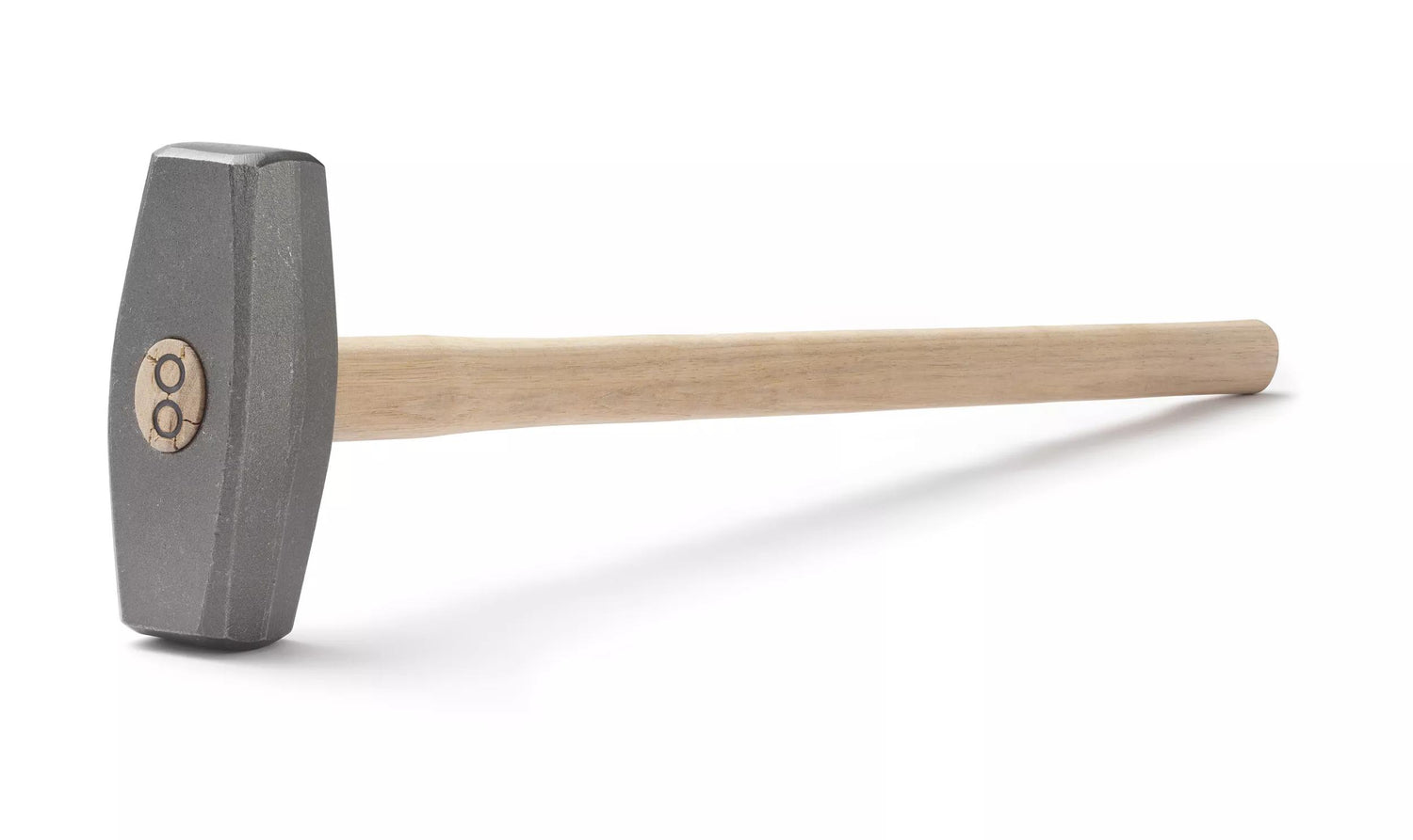Sledge made from blasted and clear-lacquered ironwork, with tempered square striking faces at both ends. The shaft is 900 mm long and is made from hickory.