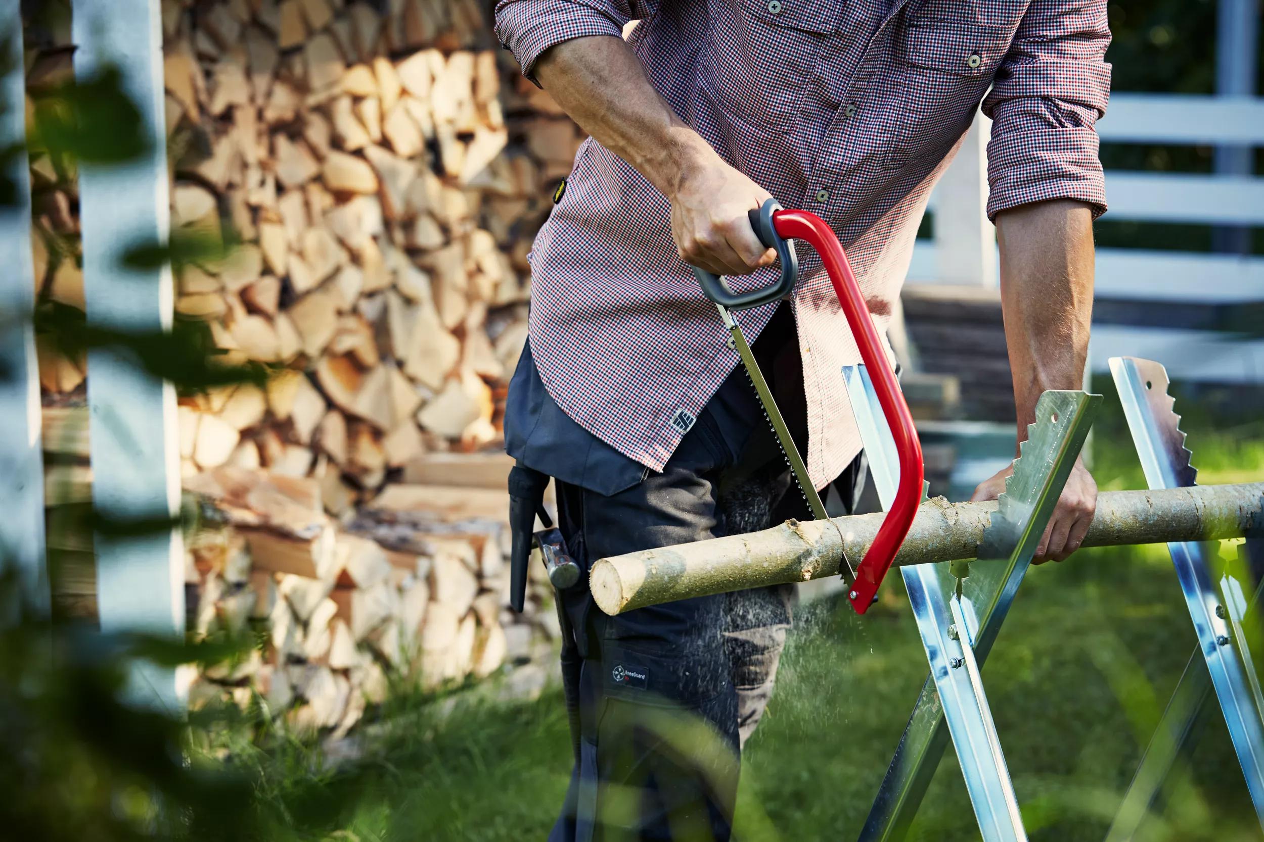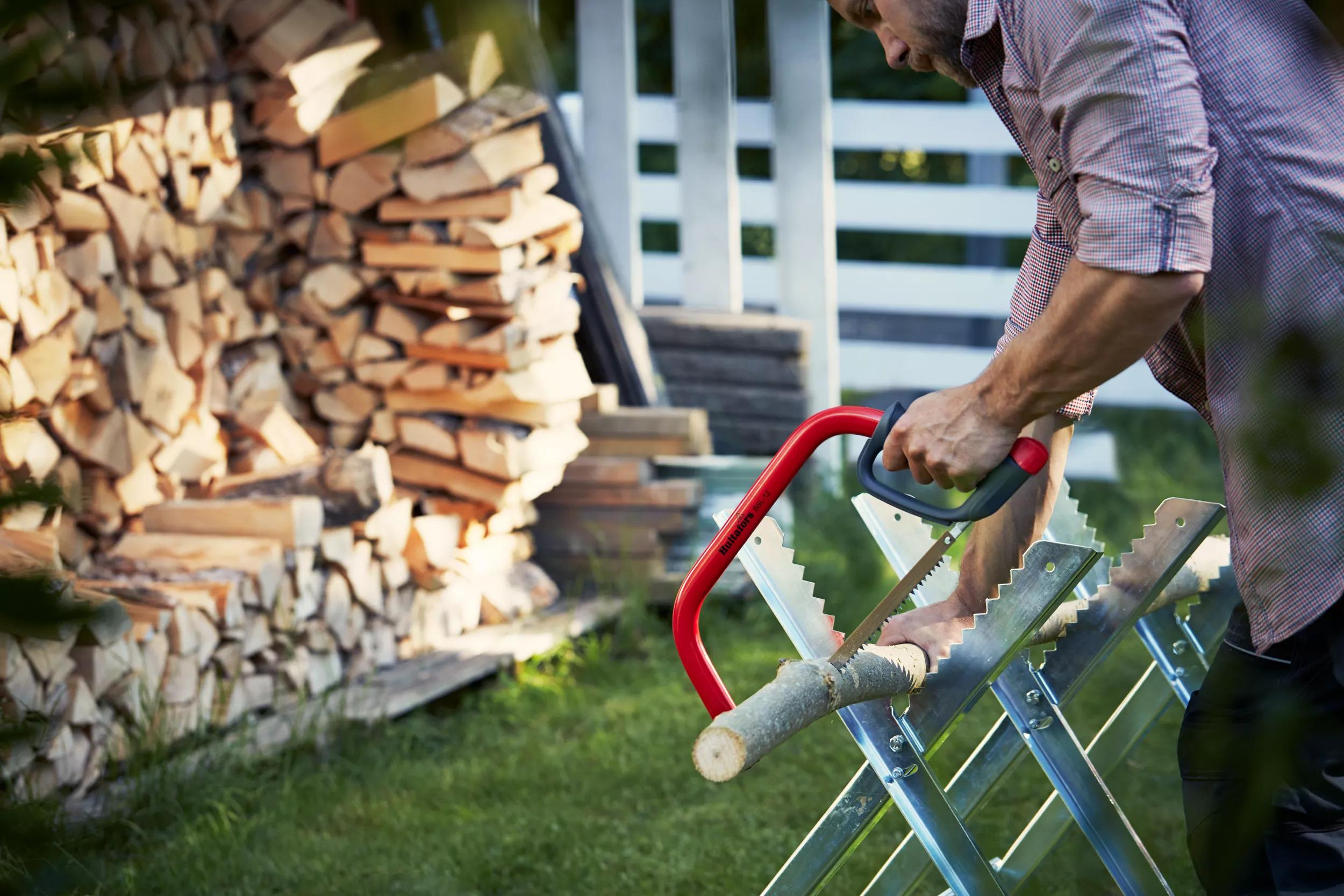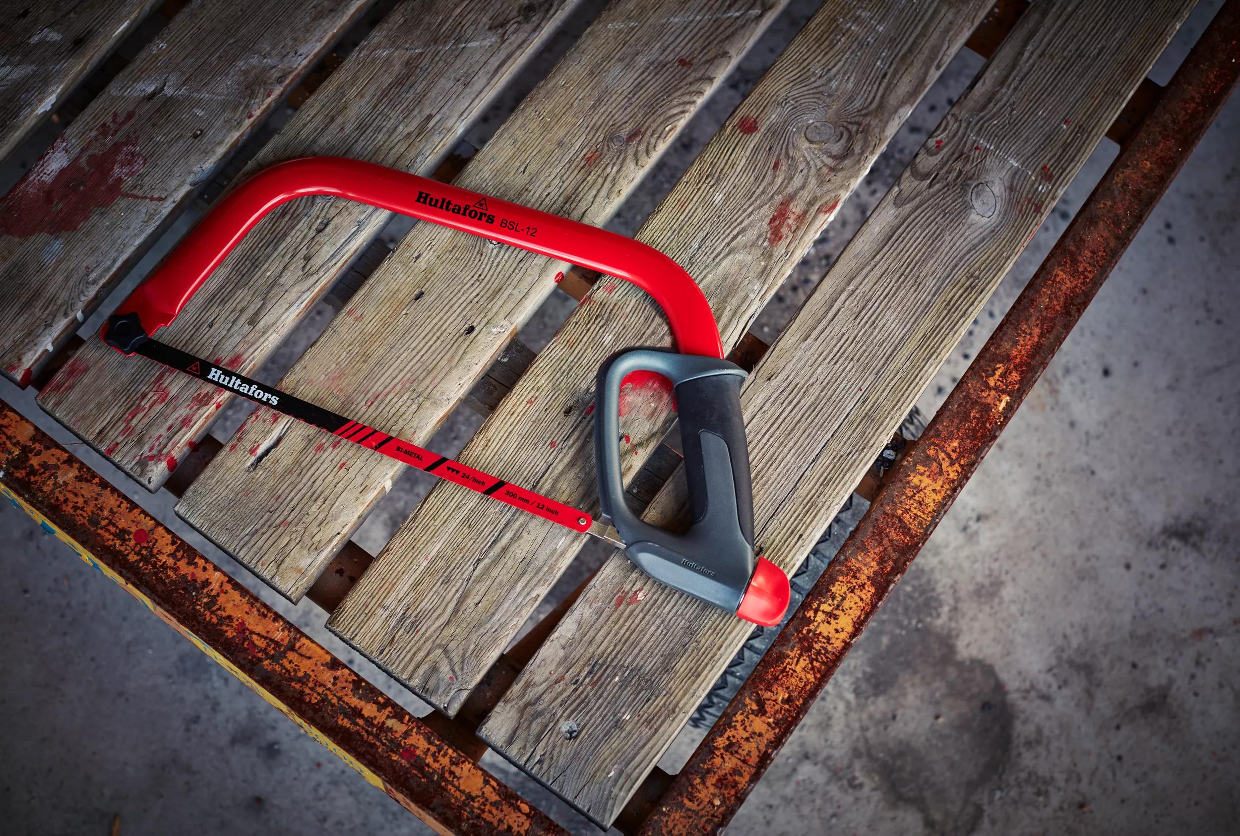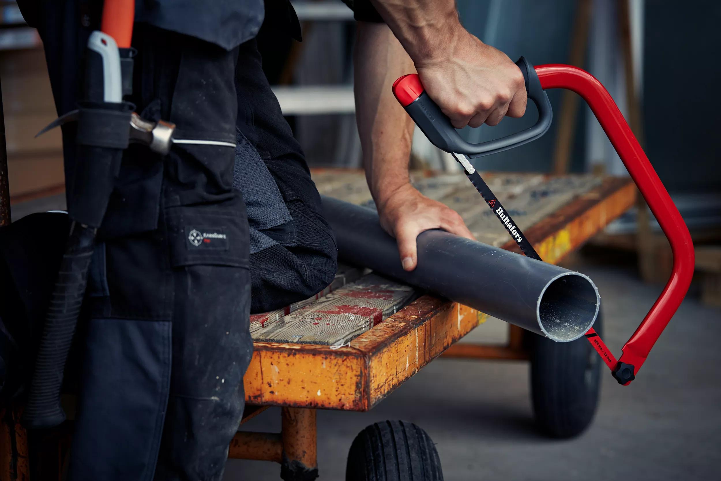 The saw is equipped with a multipurpose saw blade for best performance in both dry and fresh wood. The saw has a more triangular shaped frame in order to provide an improved access in narrow spaces.