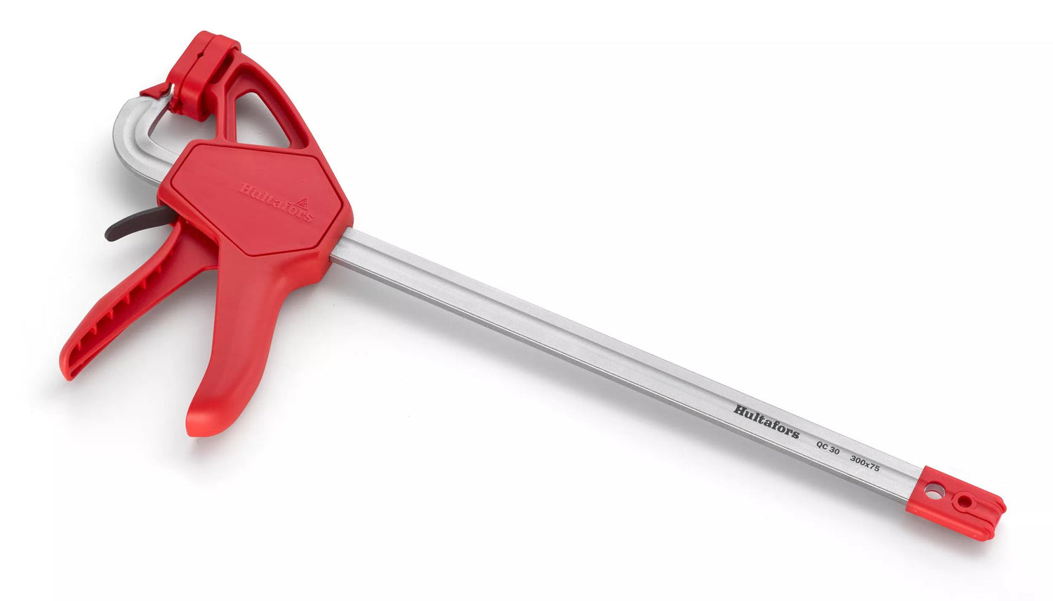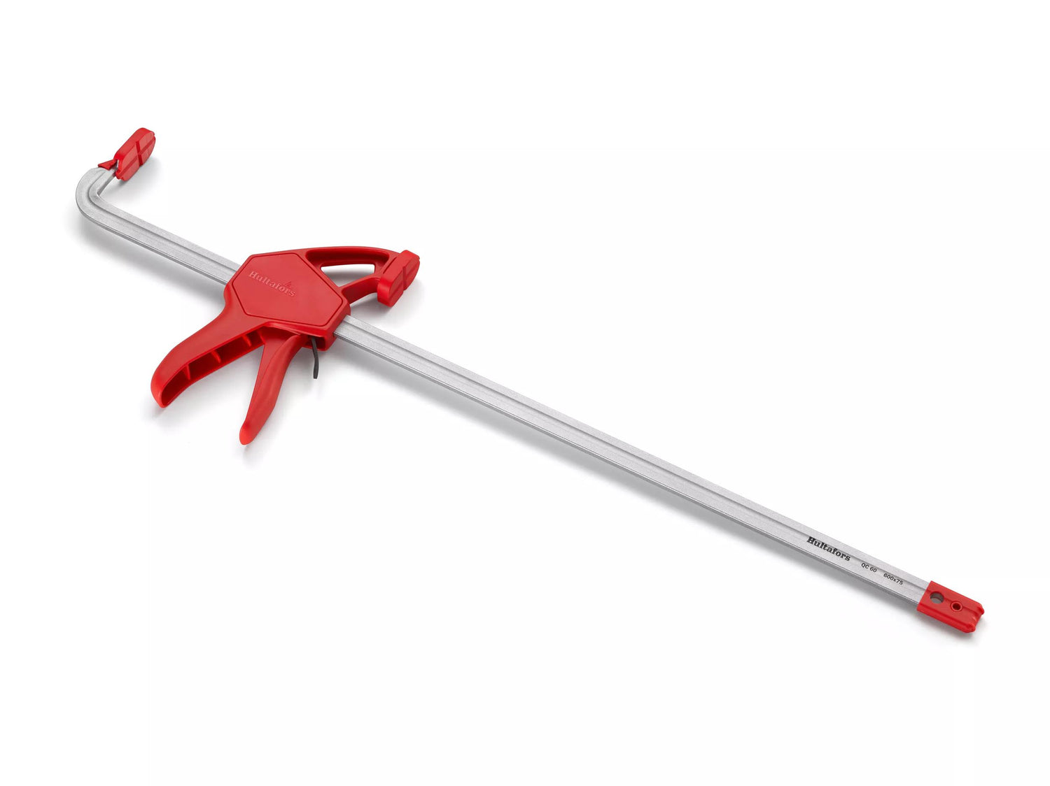 Steel rail forged in one piece, with a slim front jaw for increased access in narrow spaces. Pressure plates with tracked rubber pads to protect the surface and provide an increased clamping force. Hardened rod and bricks for durable and high performance. Reversible head enabling both internal and external attachment. Housing made of fiberglass-reinforced nylon.