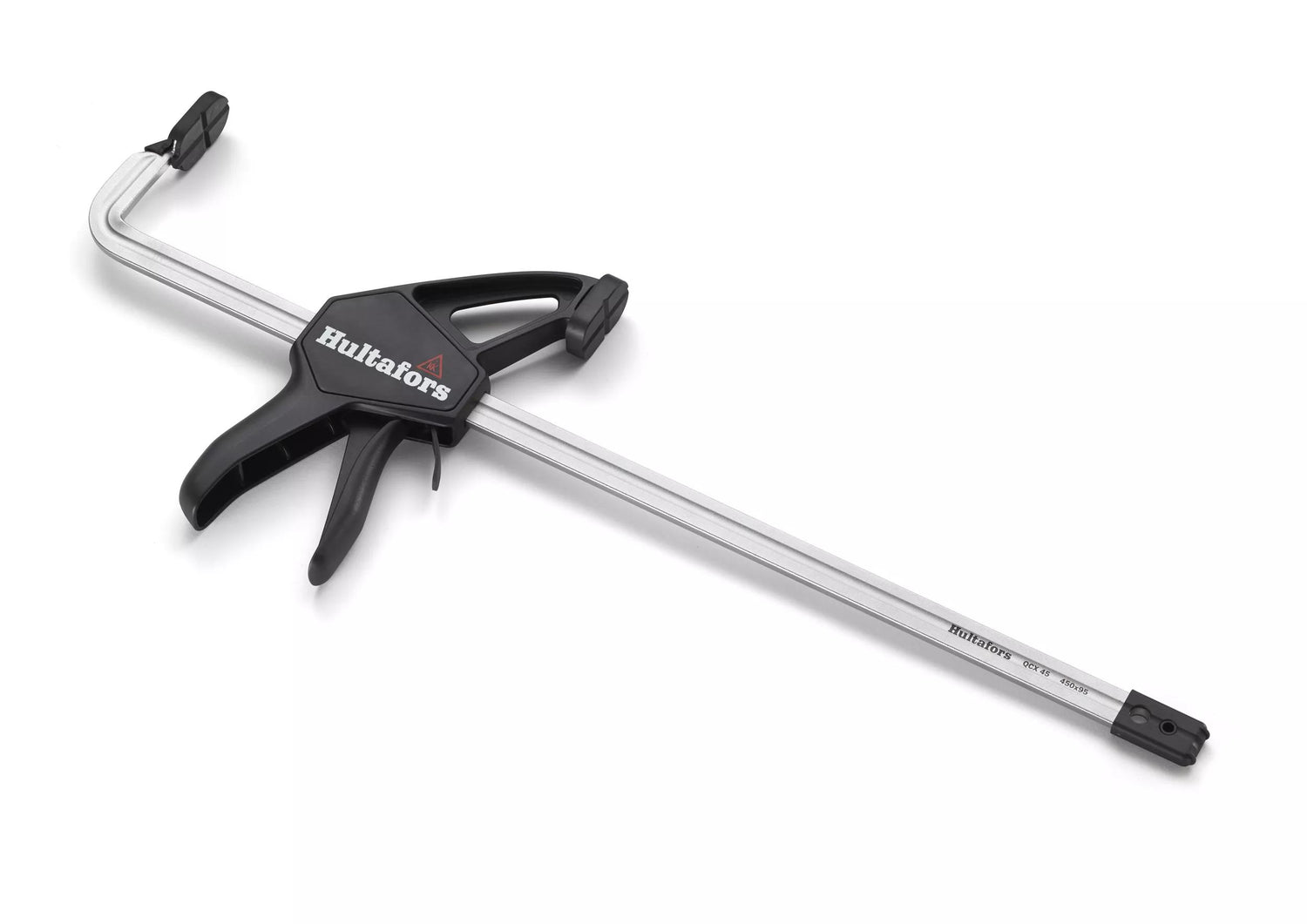 Steel rail forged in one piece, with a slim front jaw for increased access in narrow spaces. Pressure plates with tracked rubber pads to protect the surface and provide an increased clamping force. Hardened rod and bricks for durable and high performance. Reversible head enabling both internal and external attachment. Housing made of fiberglass-reinforced nylon.
