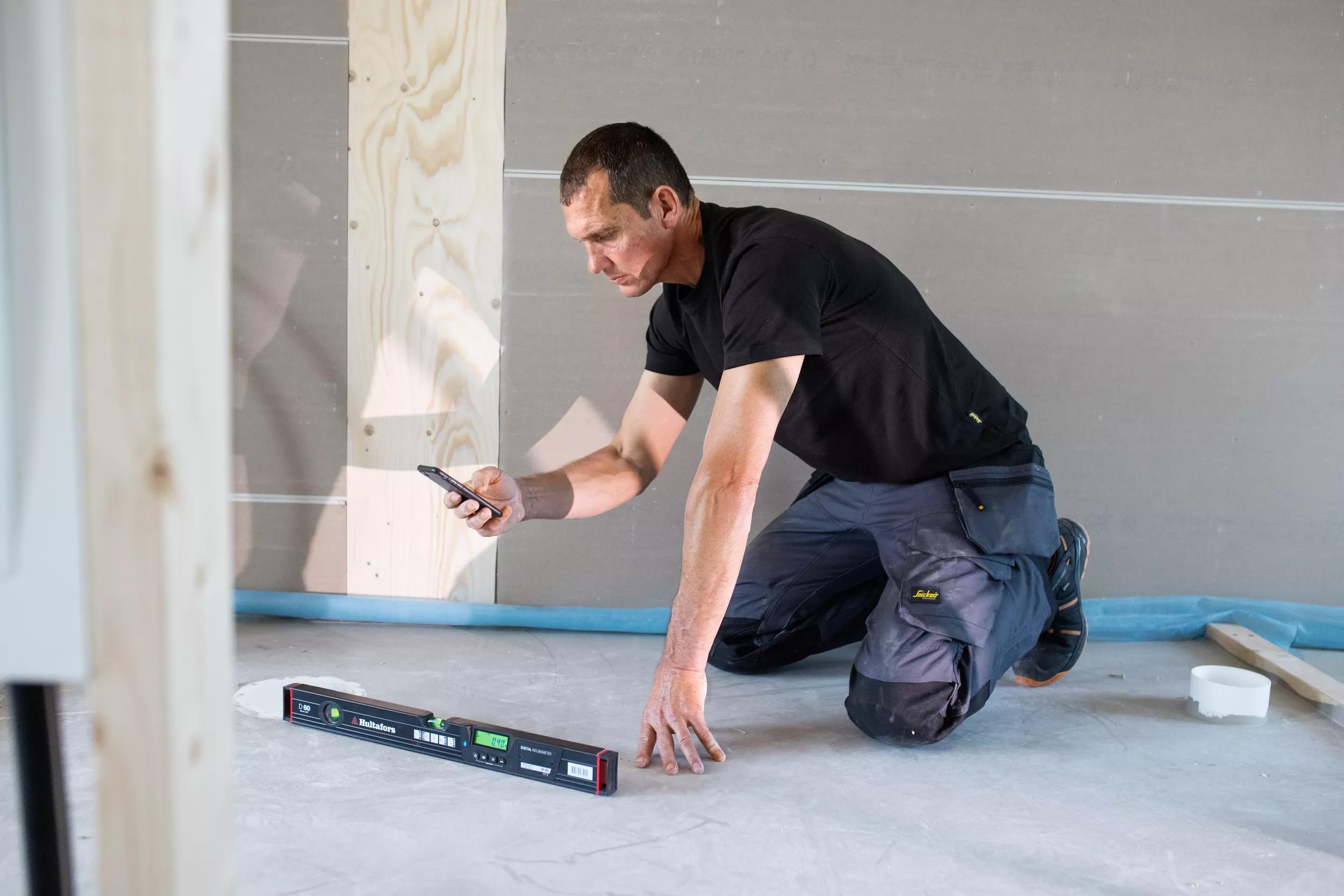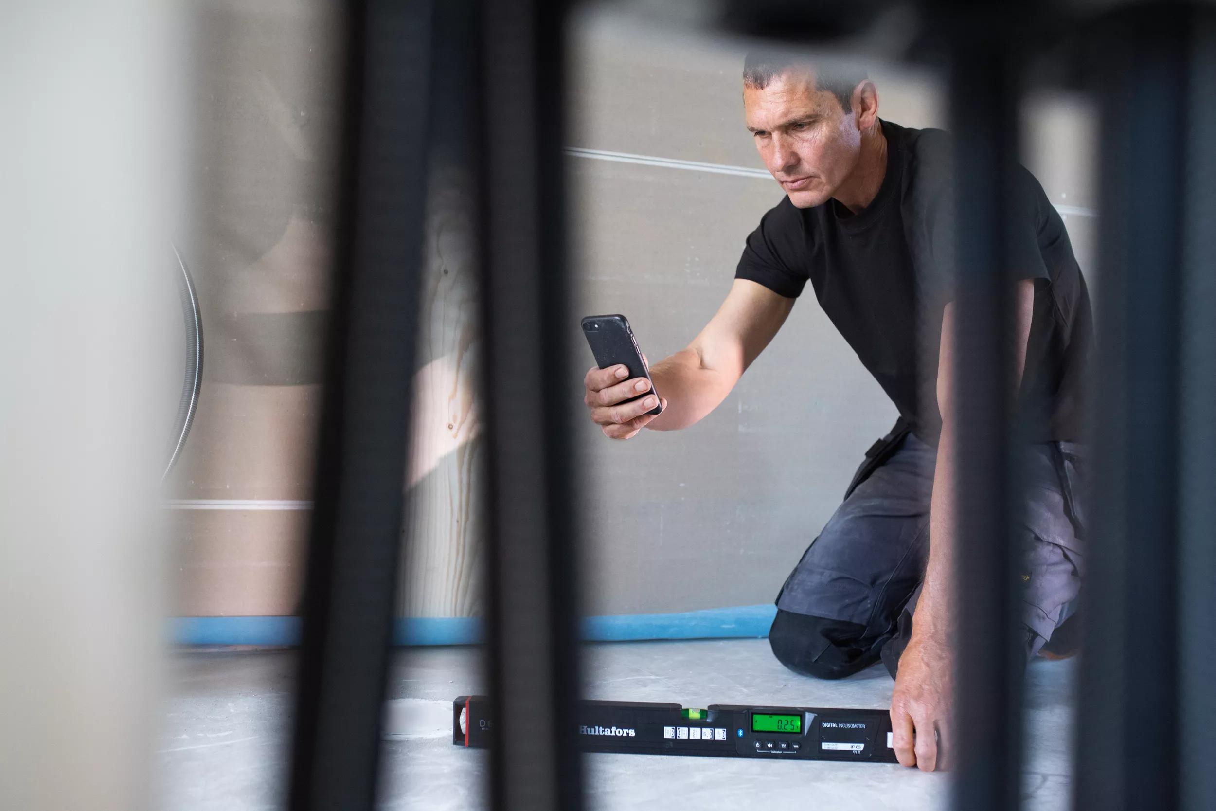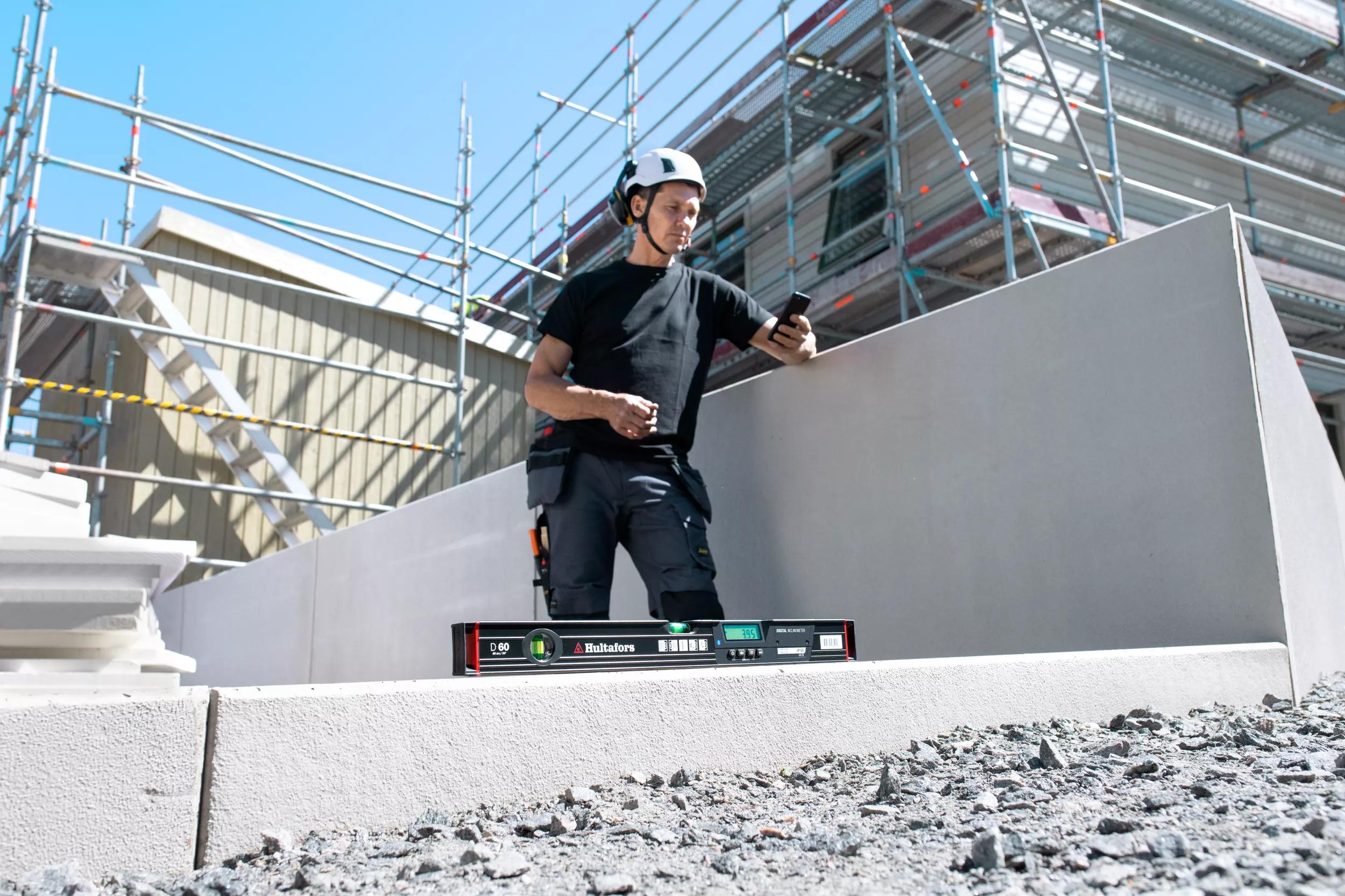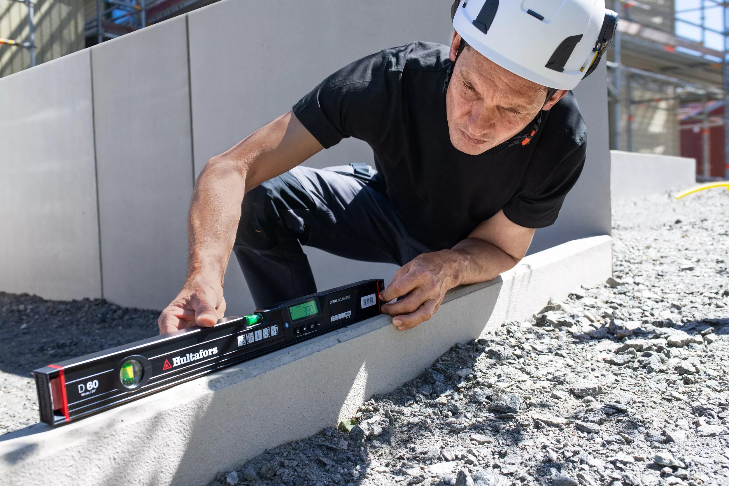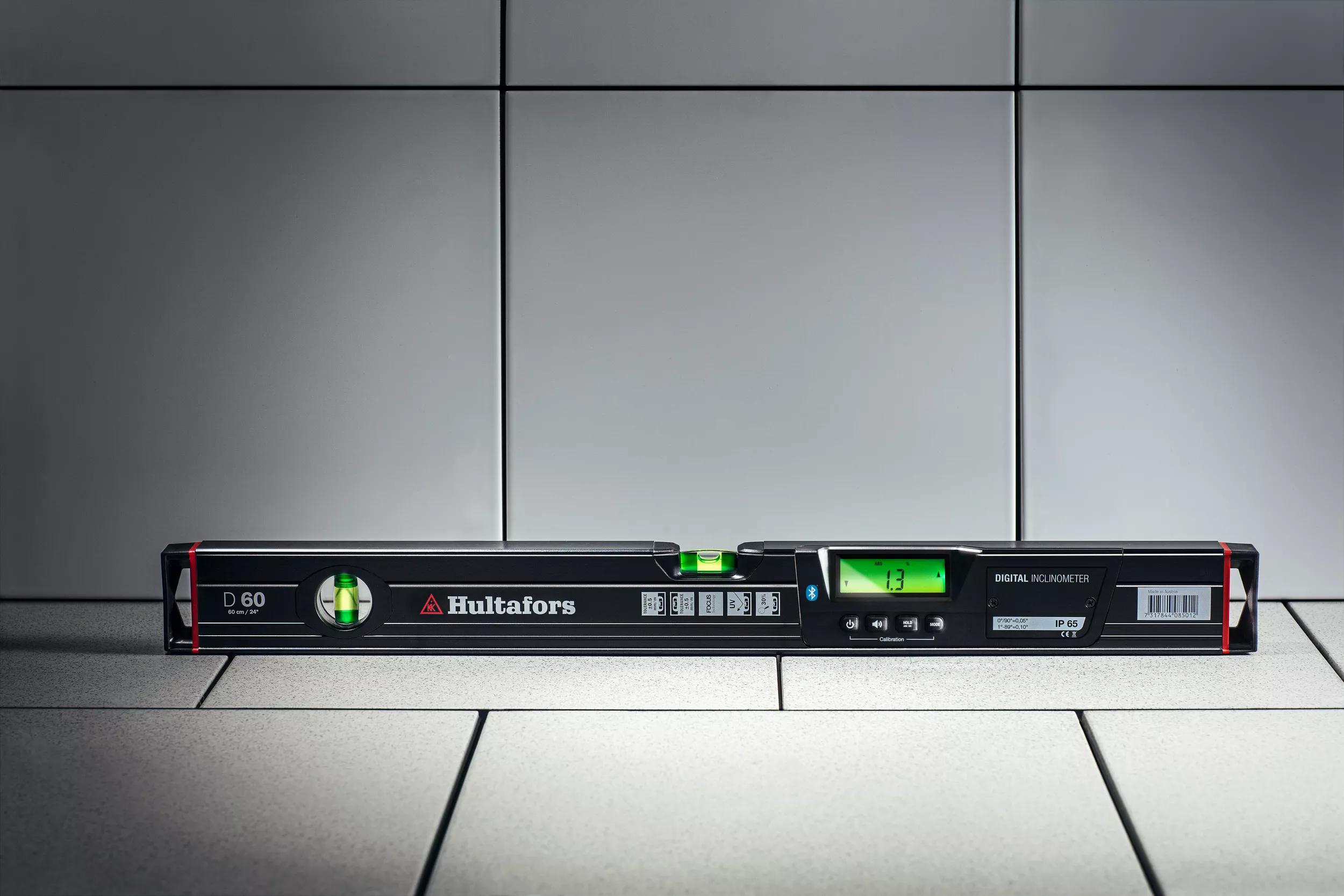- The display shows tenths of degrees, percentages, mm/m or inch/feet.