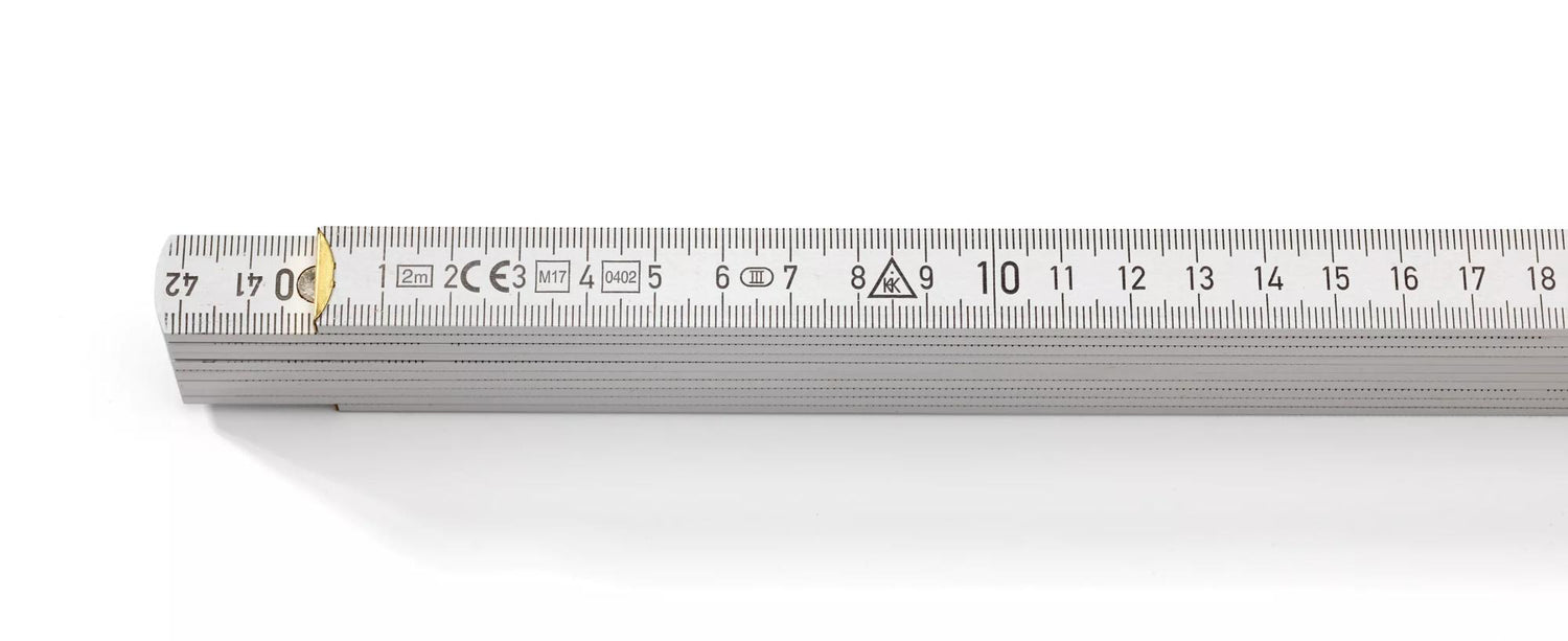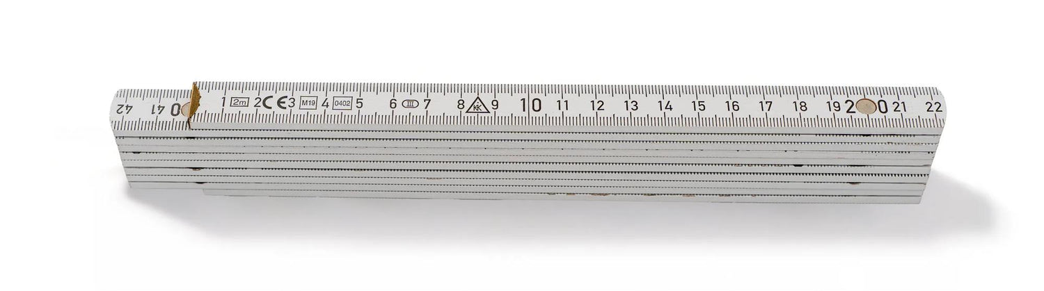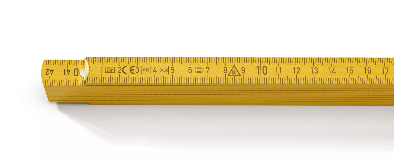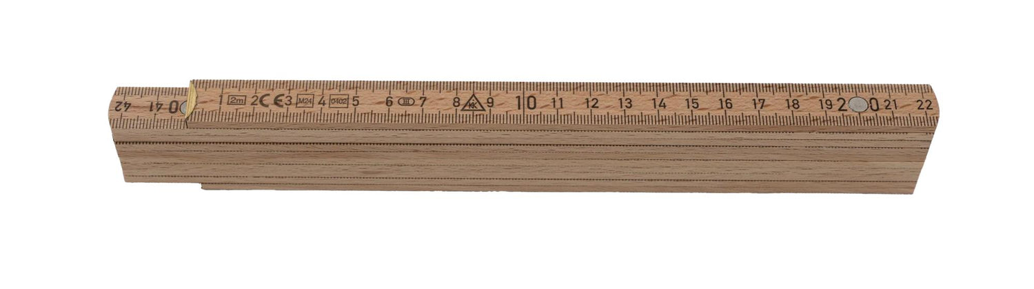 A Central European style blockmeter manufactured from beech wood with Swedish steel joints. The compact sides giving excellent surface for advertising printing. 3 mm thick sections giving extra stability. Metric scale in black on both sides and red decimeter figures.