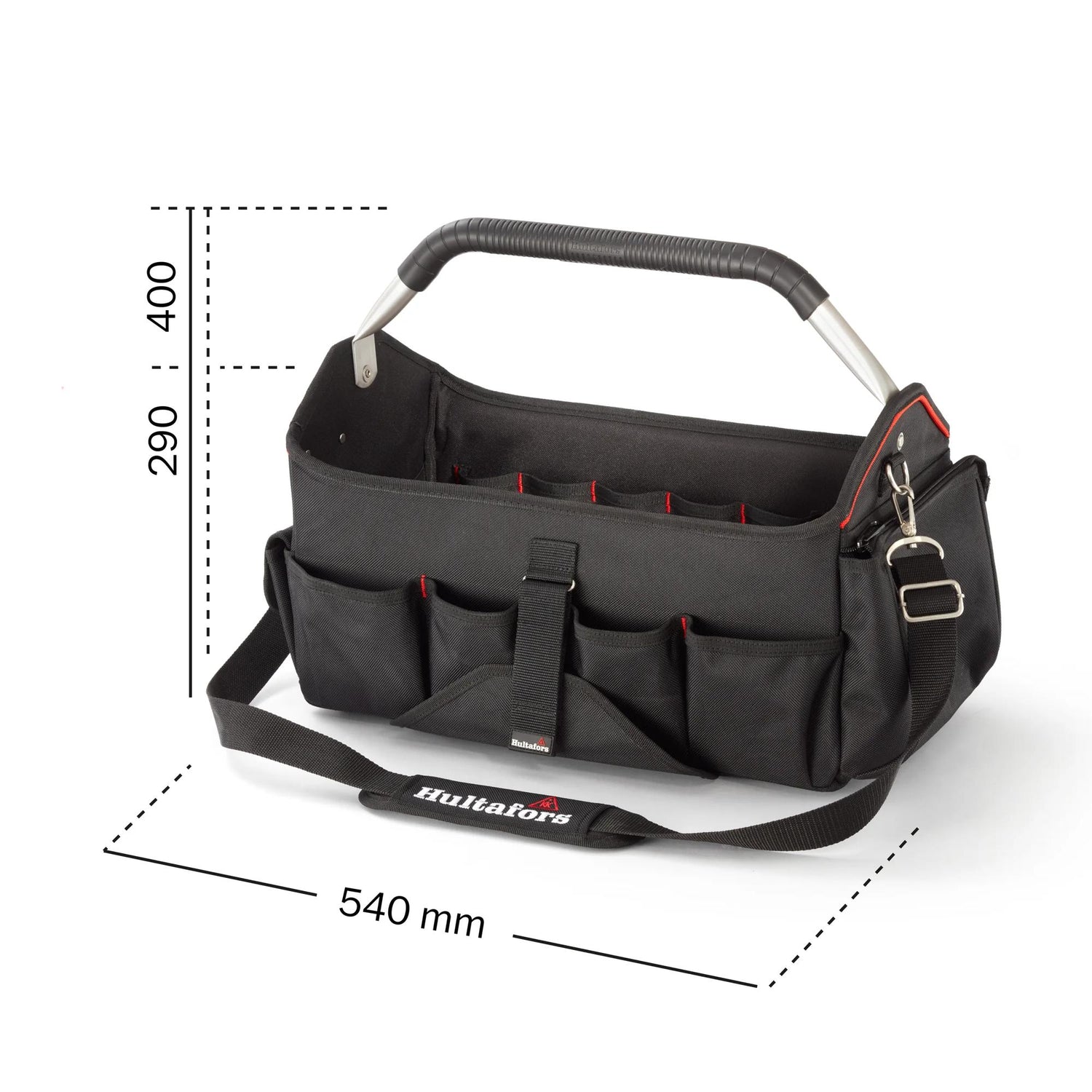 Des poches de taille moyenne avec rabats et fermetures éclair sont ménagées pour ranger en toute sécurité le matériel fragile. Un rangement pour les outils longs et étroits tels que les niveaux à bulle et les scies à main est prévu à l’extérieur du sac. Il comporte également un rangement pour mètre ruban à l’extérieur, une sangle pour ruban d’électricien, des porte-stylos, un porte-clés à chaîne et des brides élastiques pours les petits outils tels que les tournevis.