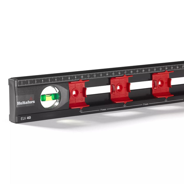 Niveau à bulle pour installations électriques. Le profil en aluminium en forme de C comporte des embouts en plastique et des entretoises en caoutchouc qui protègent le niveau à bulle et l’empêchent de glisser sur la surface de mesure. Les marqueurs coulissants avec espacement central de 71 mm gradué, permettent un positionnement rapide et précis lors de l’installation de boîtes de commutation ou de jonction conformément à DIN 49075.