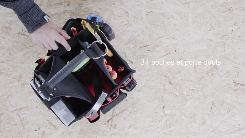 Un sac à outils à ouverture sur le dessus, souple, avec une empreinte carrée qui offre une grande stabilité dans...