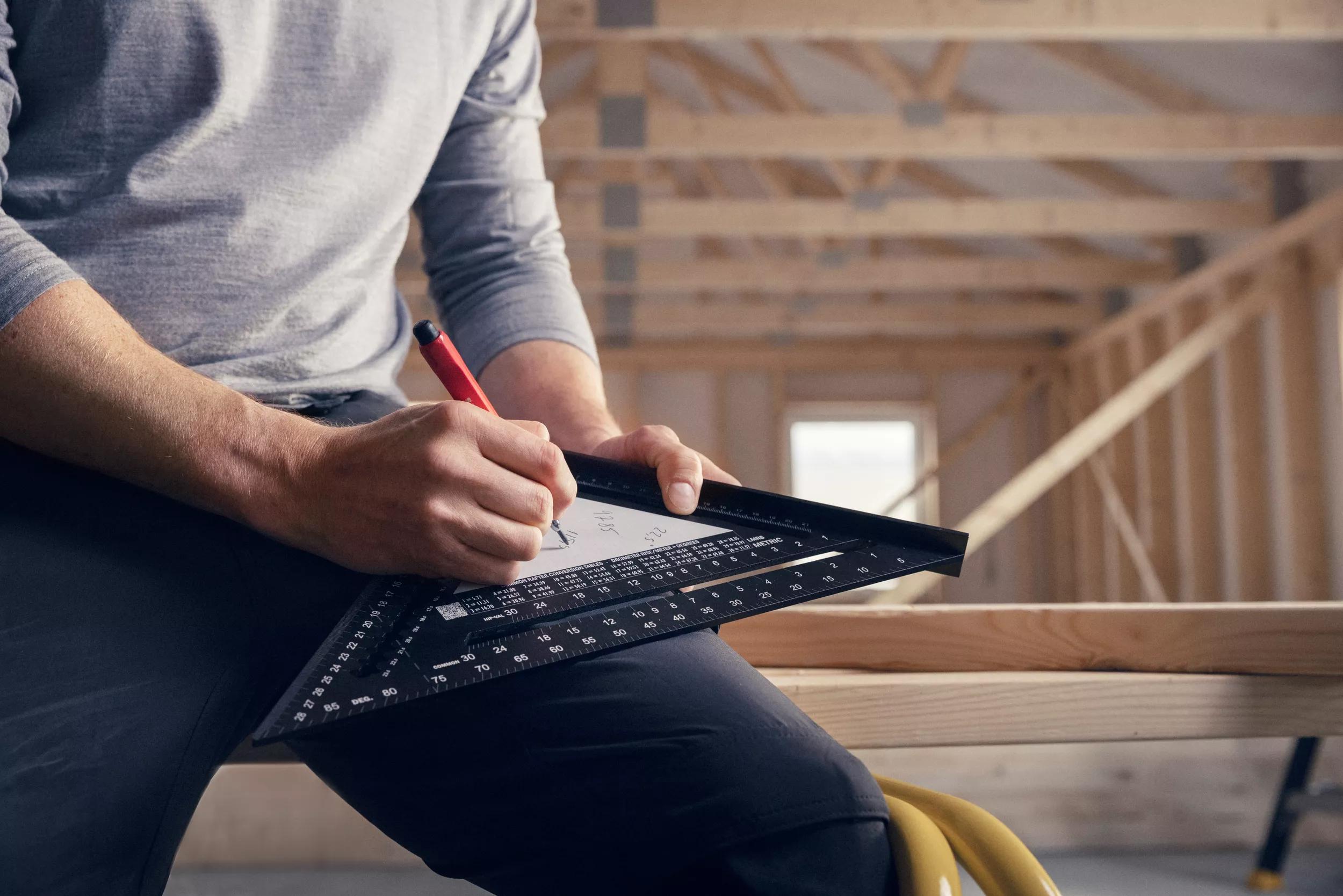 Vous pouvez l’utiliser pour des marquages précis à 45° et 90°. Vous pouvez également l’utiliser comme rapporteur, pour mesurer et marquer facilement d’autres angles. De plus, son bord épais et robuste est utile comme guide lorsque vous travaillez avec des scies électriques, pour des coupes à 45° et 90°, et avec un peu d’habileté ou une pince pour d’autres angles.