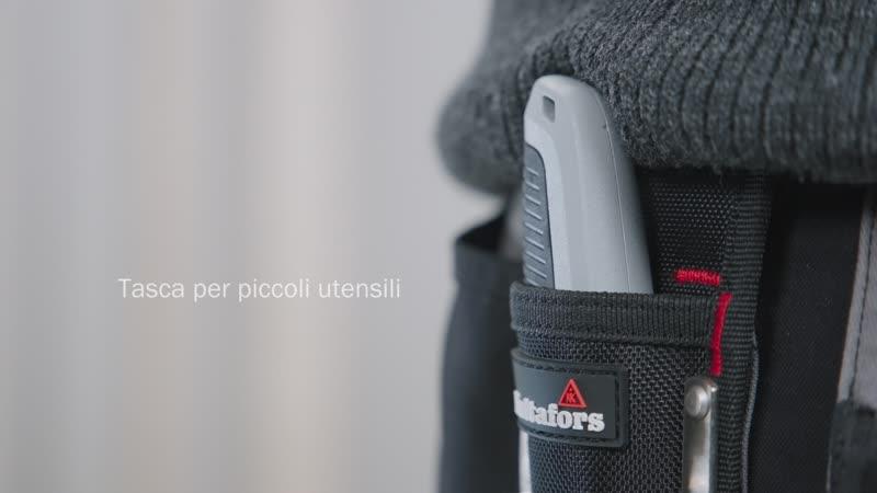 - Dispone di una tasca porta utensili multiuso e di un porta martello.