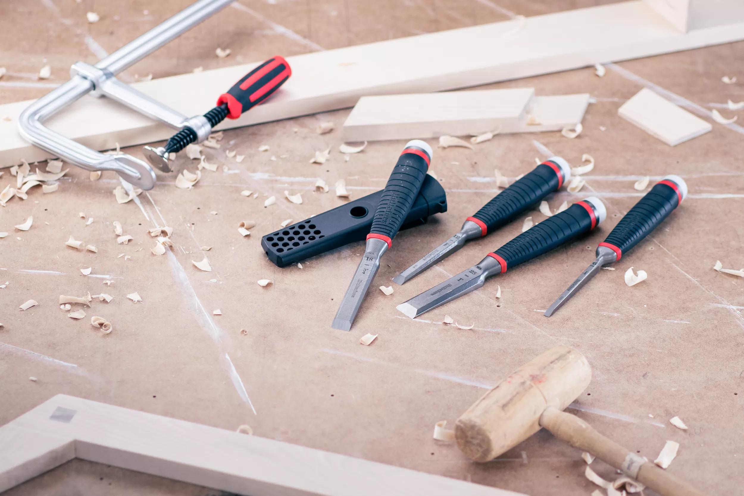 De rand is onder 25° geslepen en zorgt voor een optimale verhouding tussen scherpte en duurzaamheid. De beitels kunnen over bijna de gehele bladlengte opnieuw worden geslepen, waardoor ze een zeer lange levensduur hebben. De hele beitel, inclusief het handvat, kan volledig plat tegen een oppervlak worden geplaatst, zodat je een perfecte parallelle snede kunt maken. De nylon eindkap kan worden vervangen als deze versleten raakt.