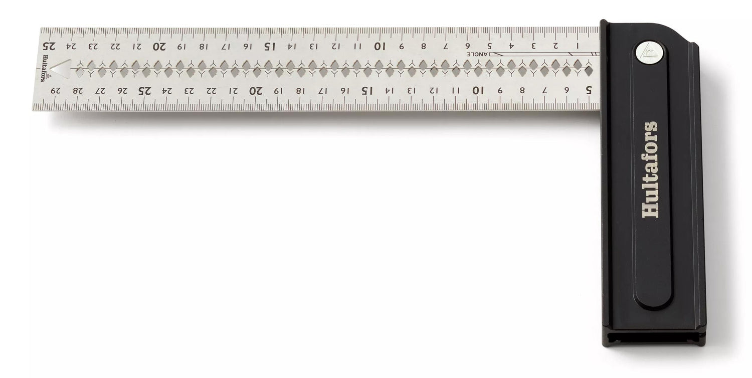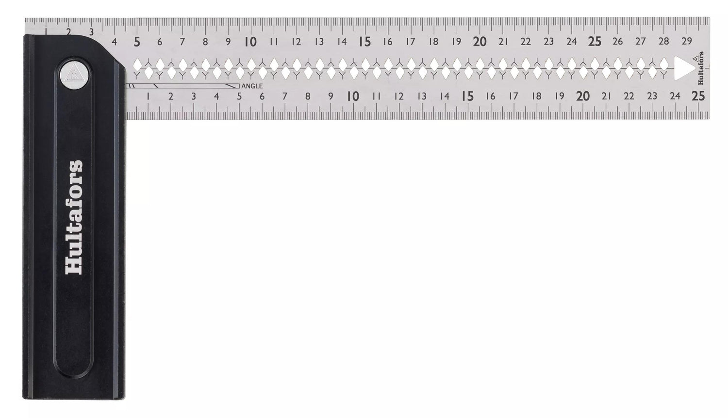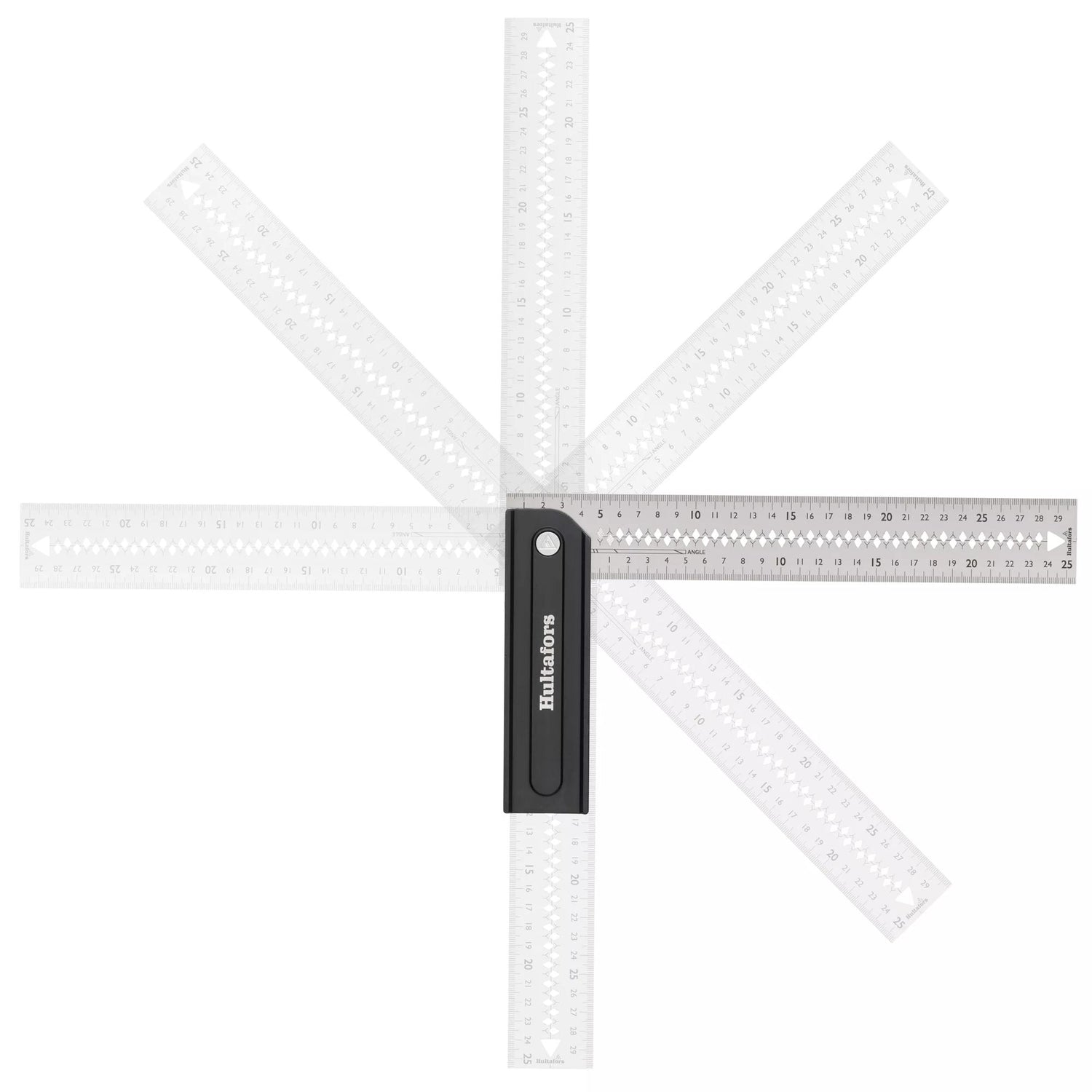 De winkelhaak heeft een scherpe buitenhoek, die andere verstelbare winkelhaken niet hebben. Als je het blad 270° draait, krijg je in plaats daarvan een afgeronde hoek, zodat je in ongelijke hoeken kunt werken.