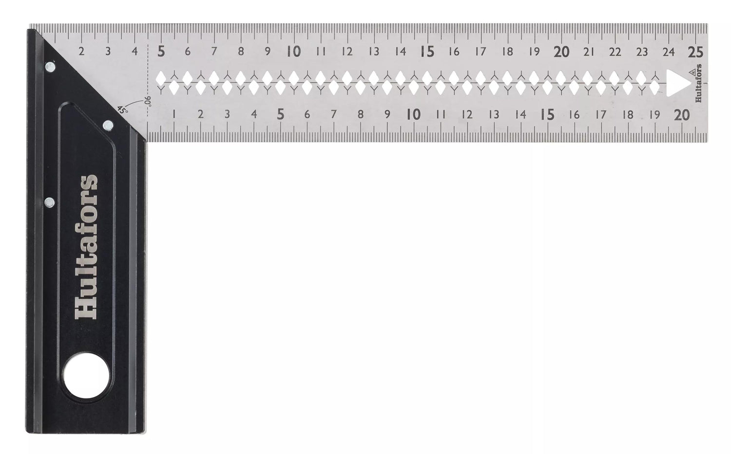Het blad is 45 mm breed voor werken met standaardmaat bouten en heeft een middellijn waarmee je beide zijden van een bout markeert.