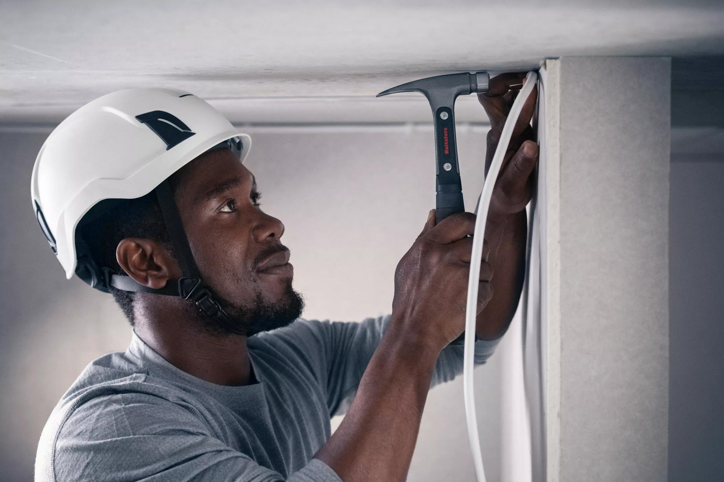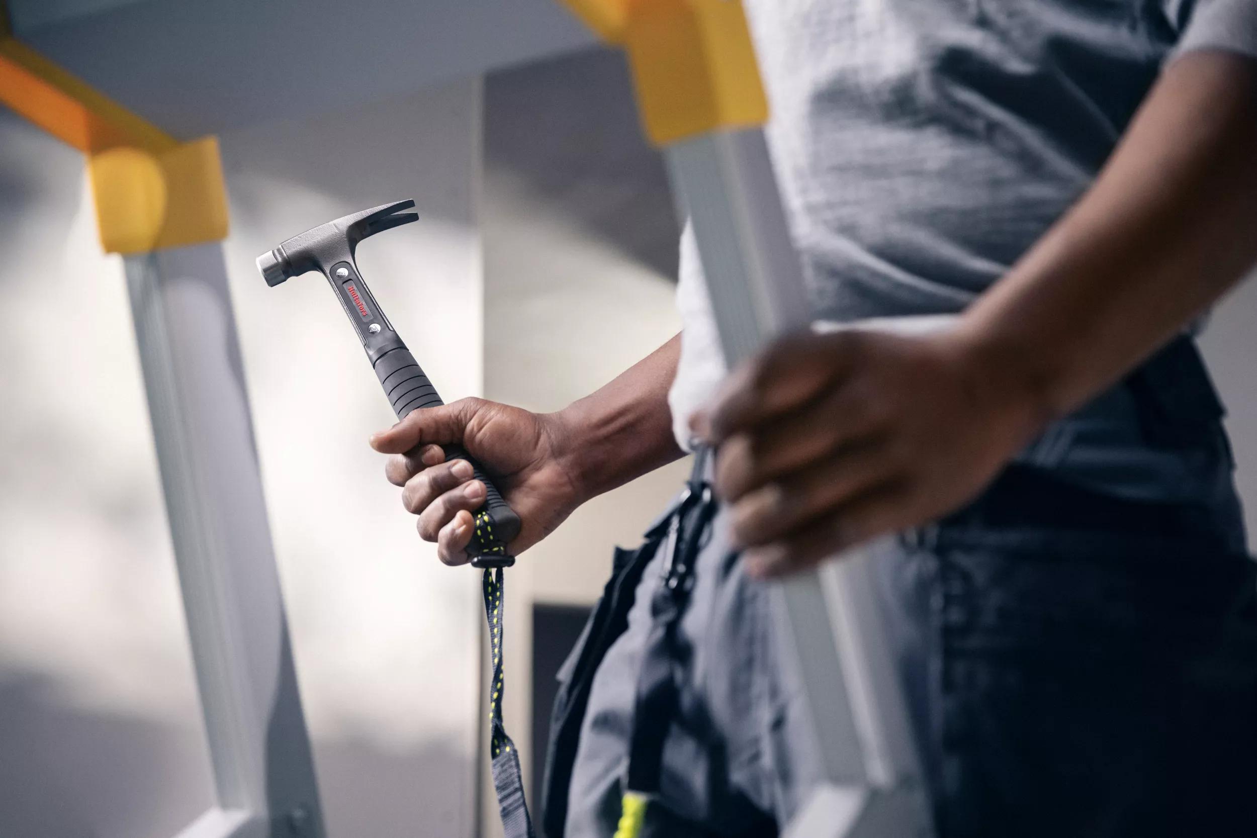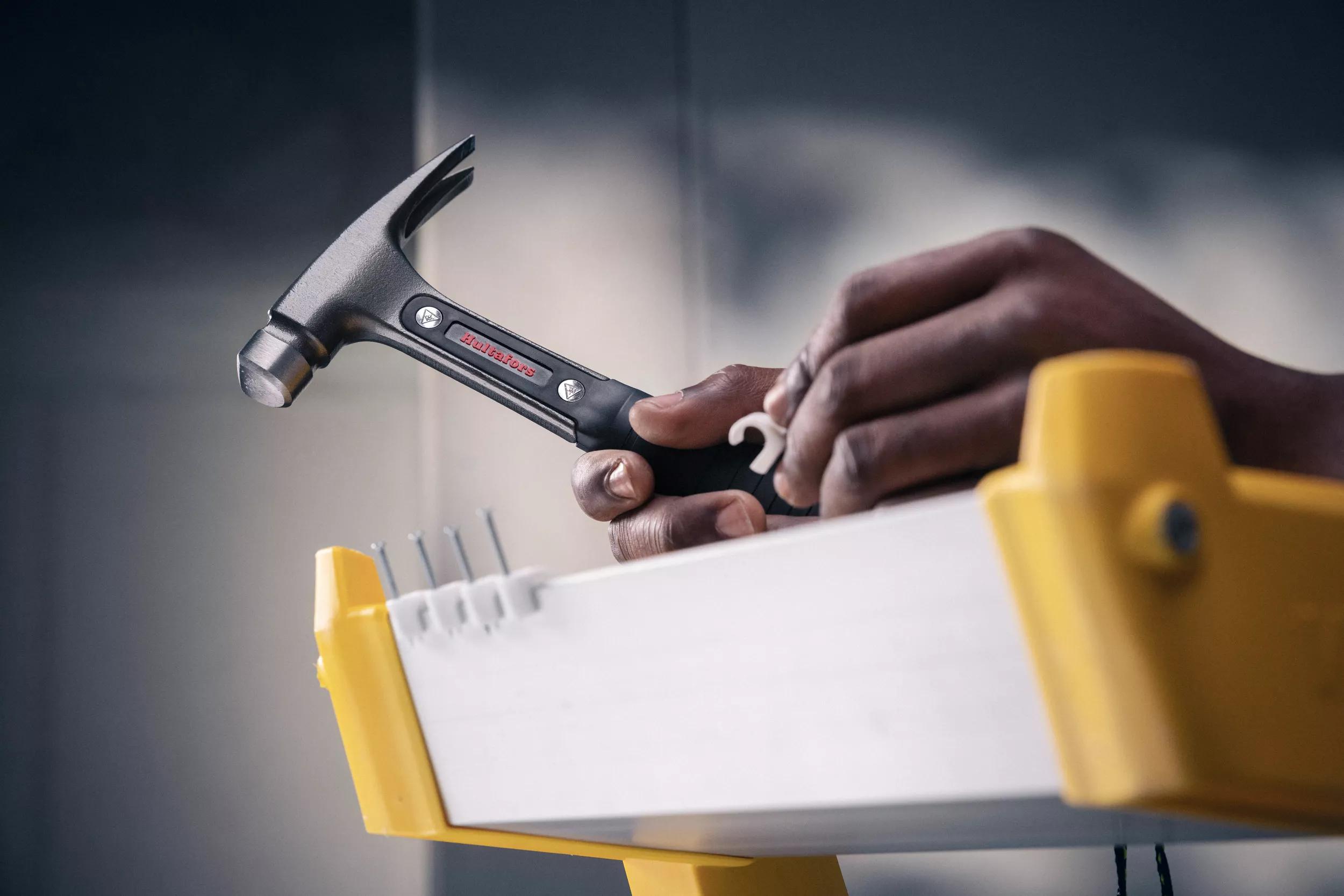 - Liten skalle med u-formad slagyta optimerad för att spika nära tak och hörn.