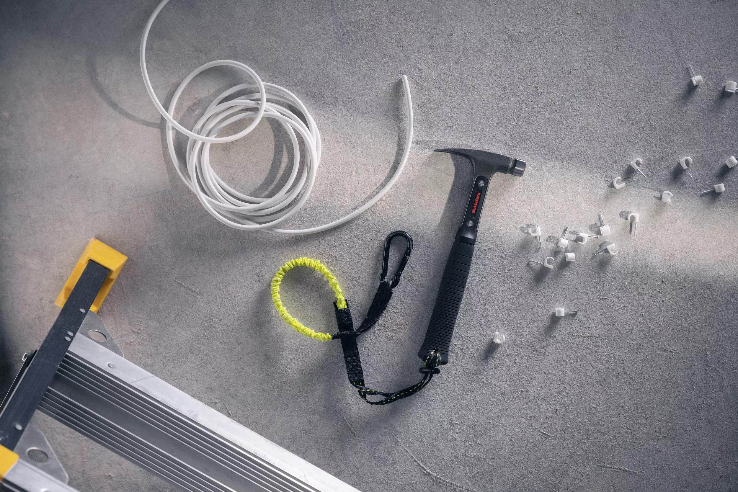 Det ergonomiskt utformade handtaget med tydligt ändstopp ger ett säkert grepp och har hål för verktygssäkring. Markeringar i handtaget vid 200 och 250 mm hjälper dig att sätta kabelklammer på jämnt avstånd.